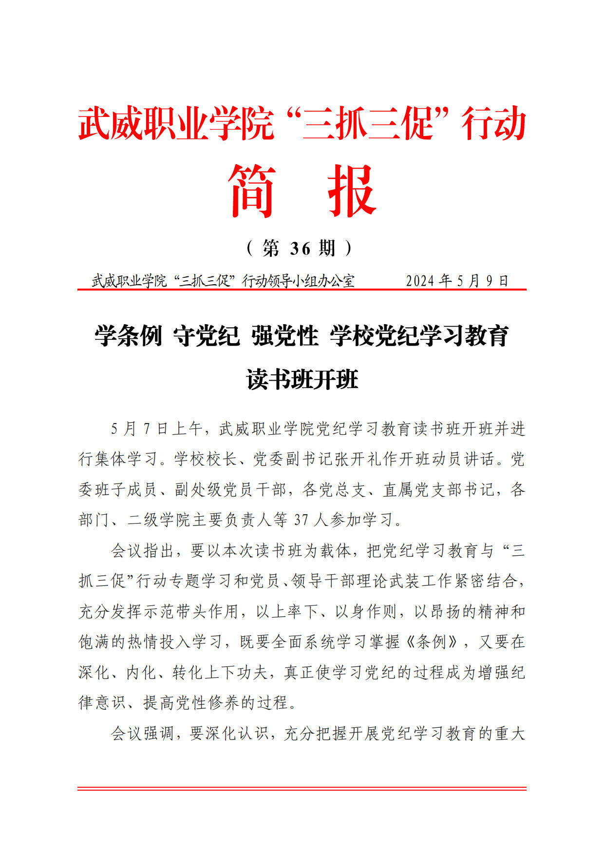 简报第36期:学条例 守党纪 强党性 学校党纪学习教育读书班开班