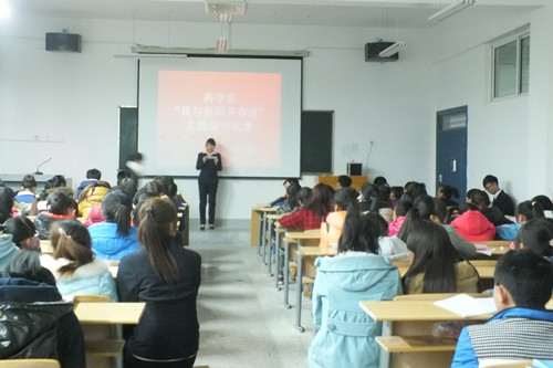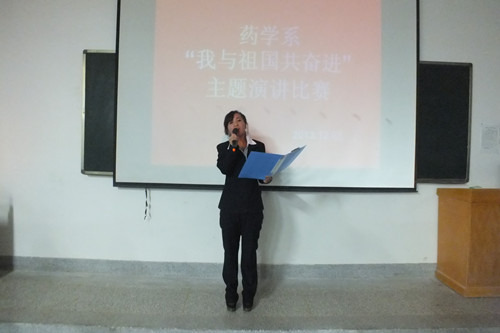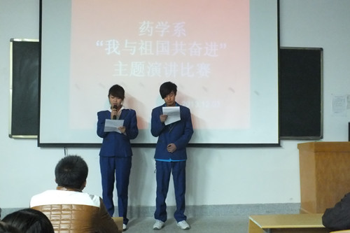 为了深入学习贯彻党的十八大精神,引领广大学生为实现国家富强、民族复兴、人民幸福的伟大“中国梦”而奋发学习、努力奋斗,药学系于2013年12月3日组织全体师生开展了以“我与祖国共奋进”为主题的演讲比赛。