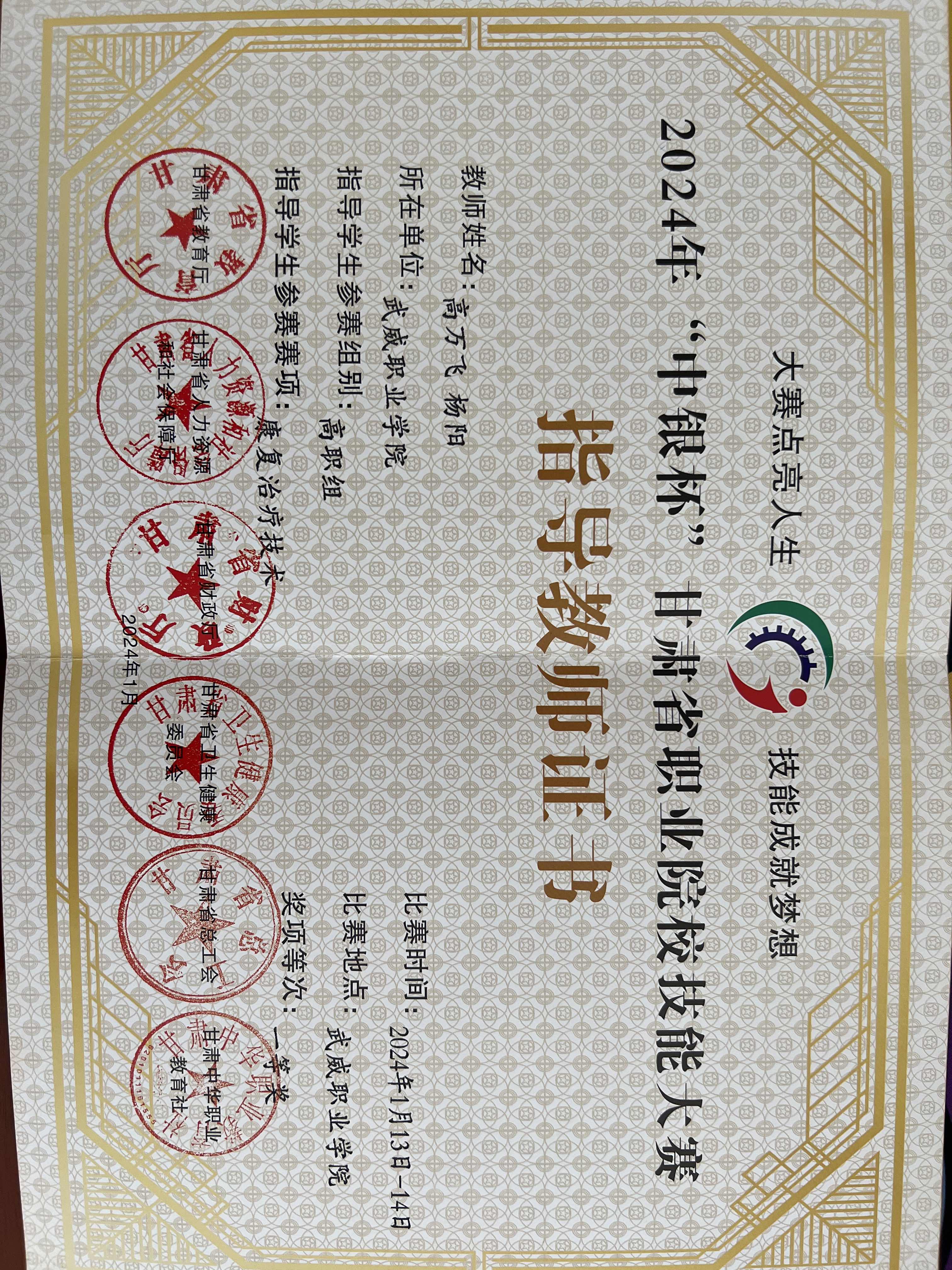 在2024年“中银杯”甘肃省职业院校技能大赛中我院多组学生、指导教师获得高职组团体一等奖等多项奖项。