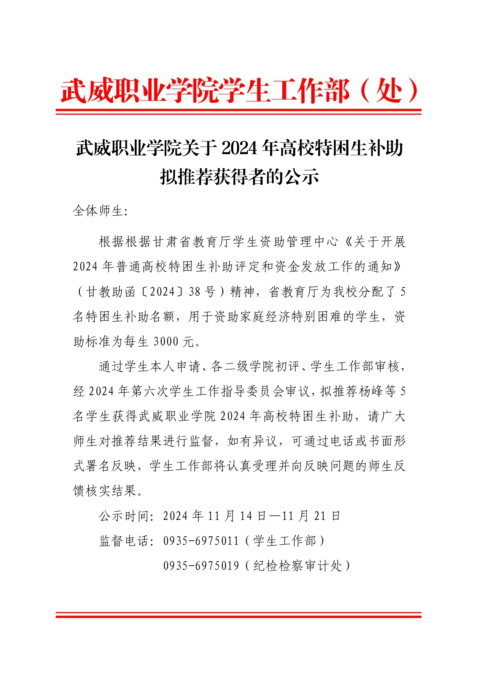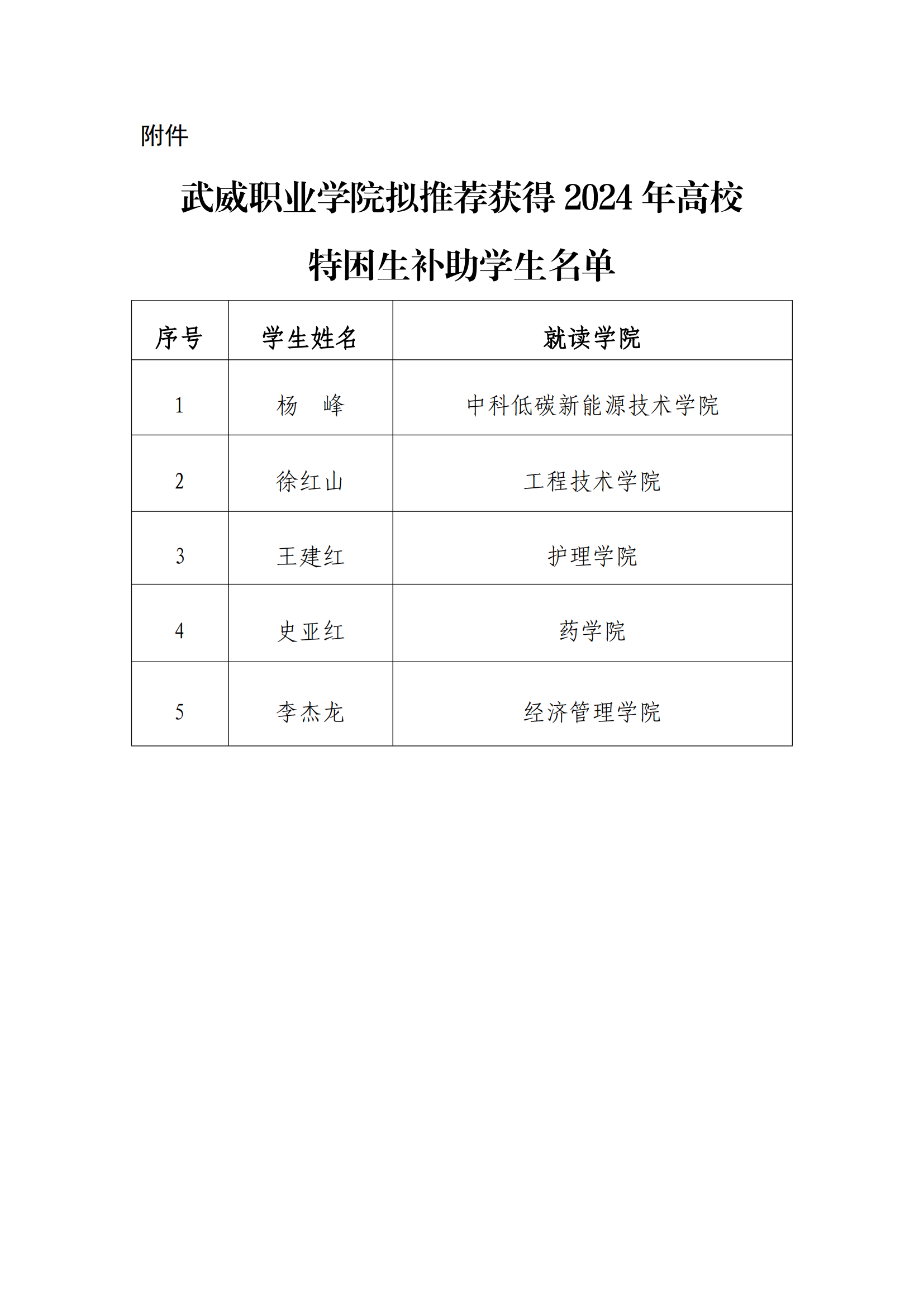 武威职业学院关于2024年度筑梦奖学金评选结果的公示
