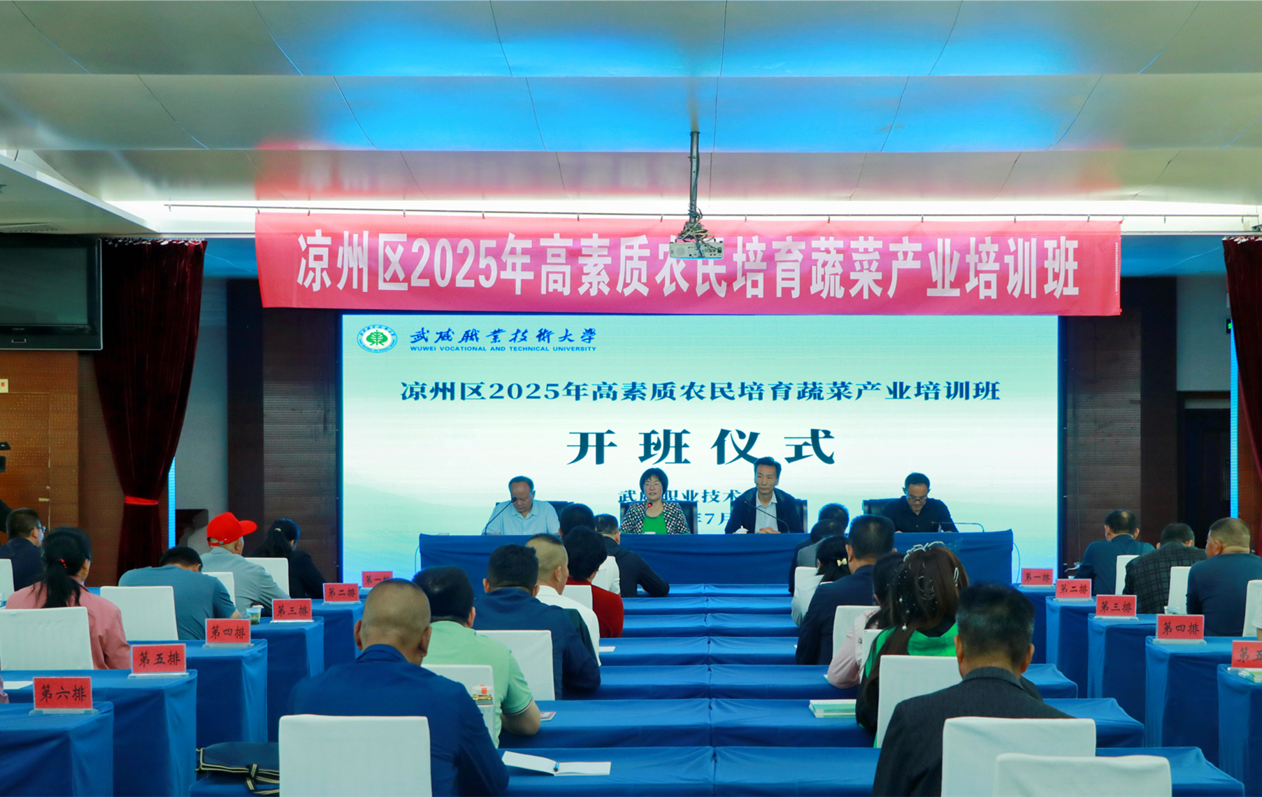 7月4日,由凉州区农业农村局主办,学校承办的凉州区2025年高素质农民培育蔬菜产业培训班顺利开班,来自凉州区从事露地蔬菜、设施蔬菜种植的50名农民学员参加培训学习。党委委员、副校长何毅,凉州区农业广播电视学校校长鲁晓卫出席开班仪式。凉州区农业广播电视学校副校长韩进耀主持开班仪式。