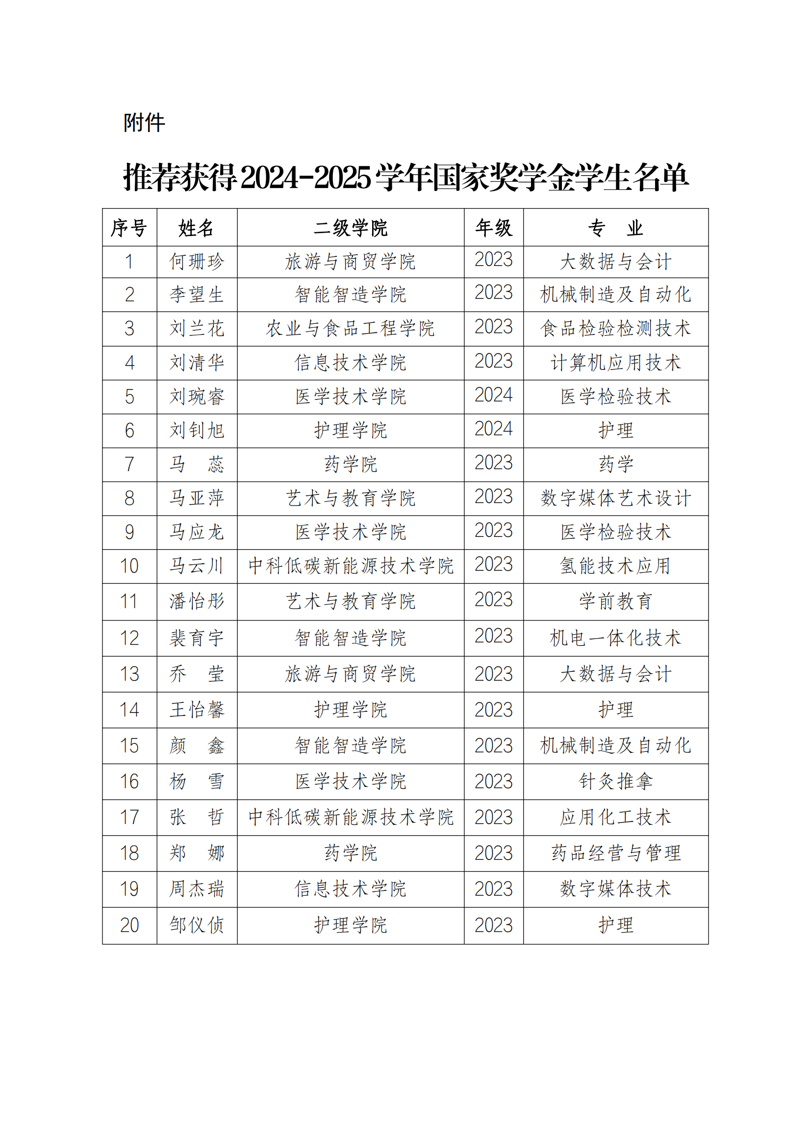 关于推荐获得2024-2025学年国家奖学金学生名单的公示