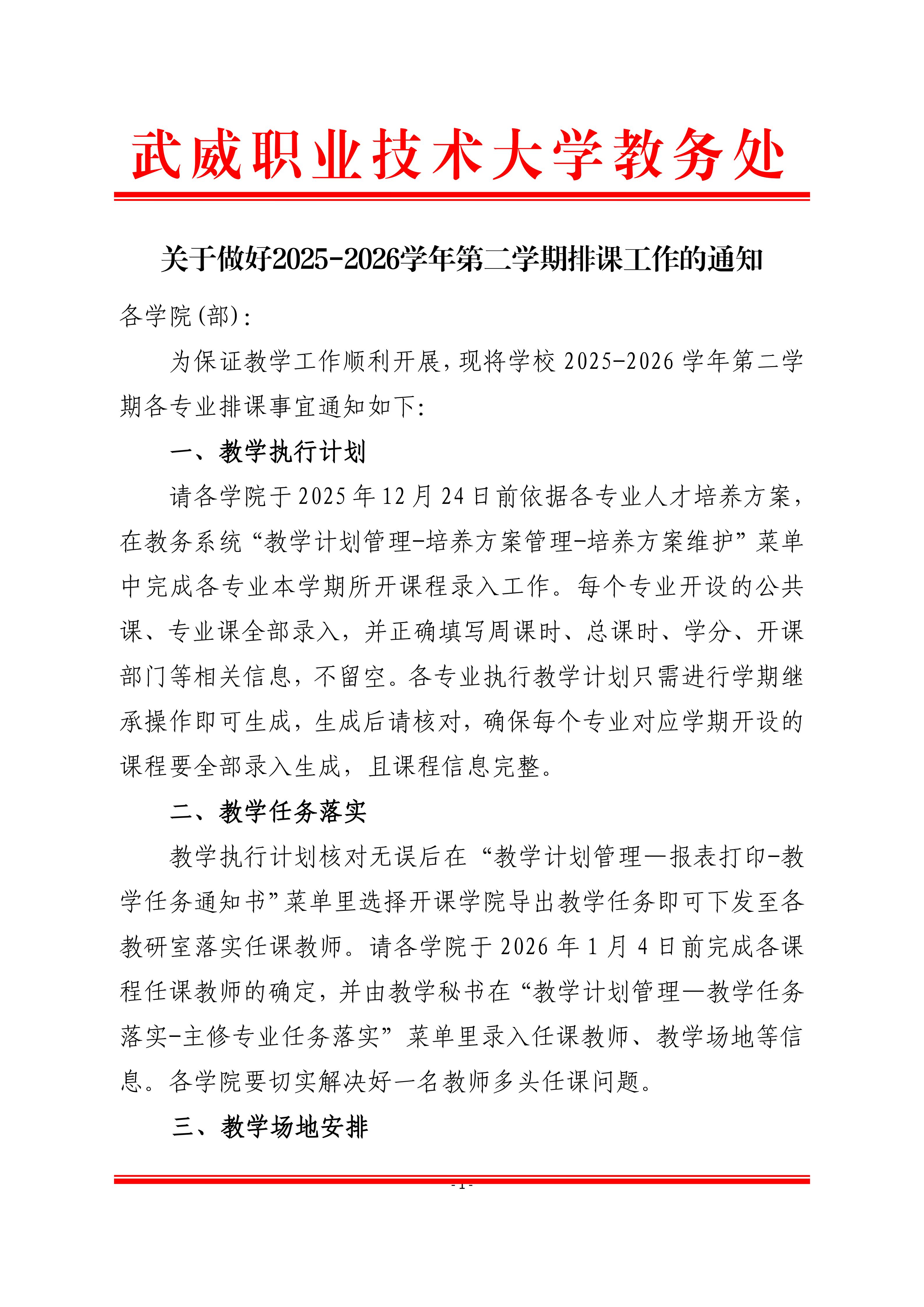 关于做好2025-2026学年第一学期新生各专业排课工作的通知