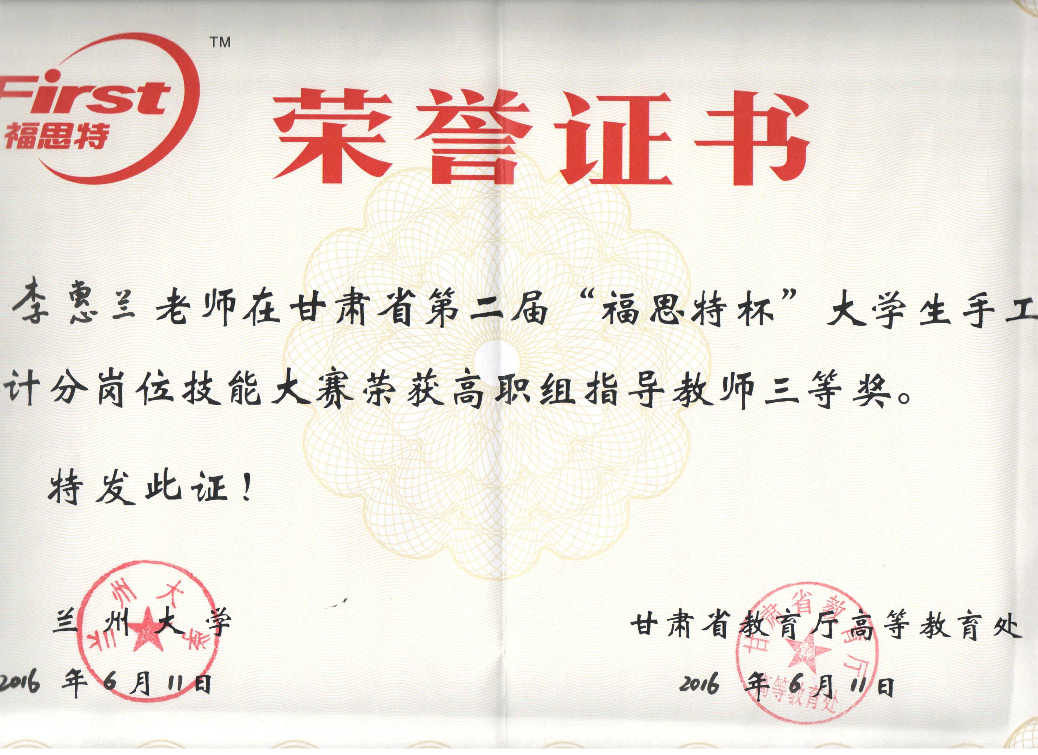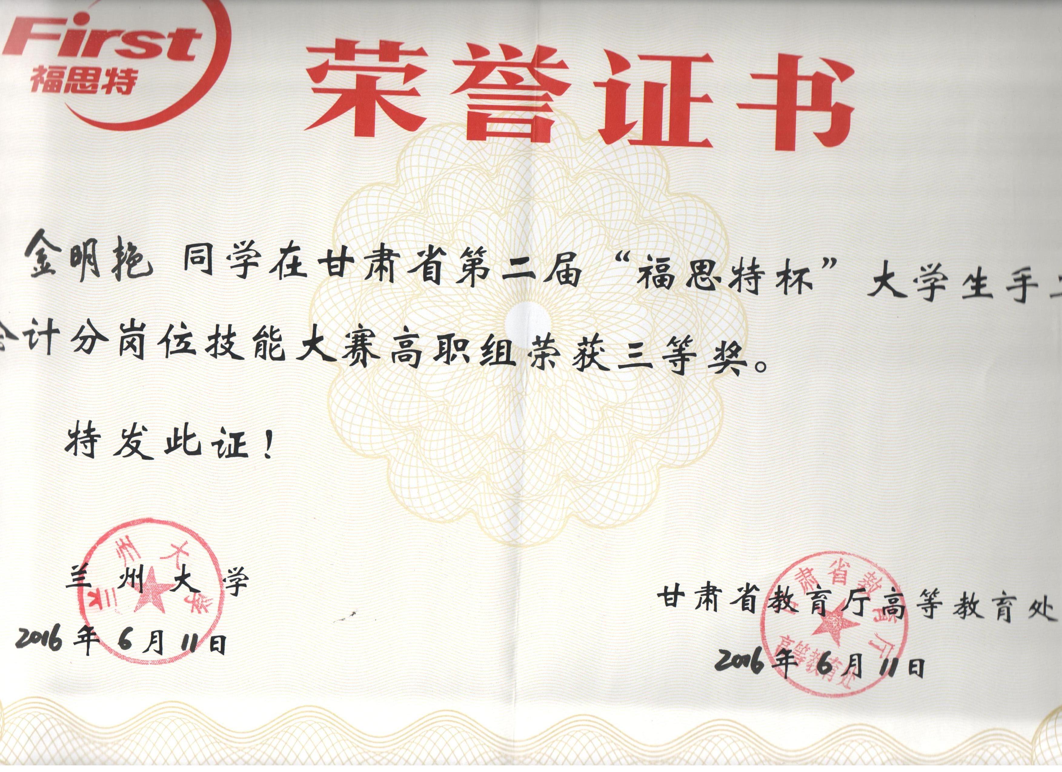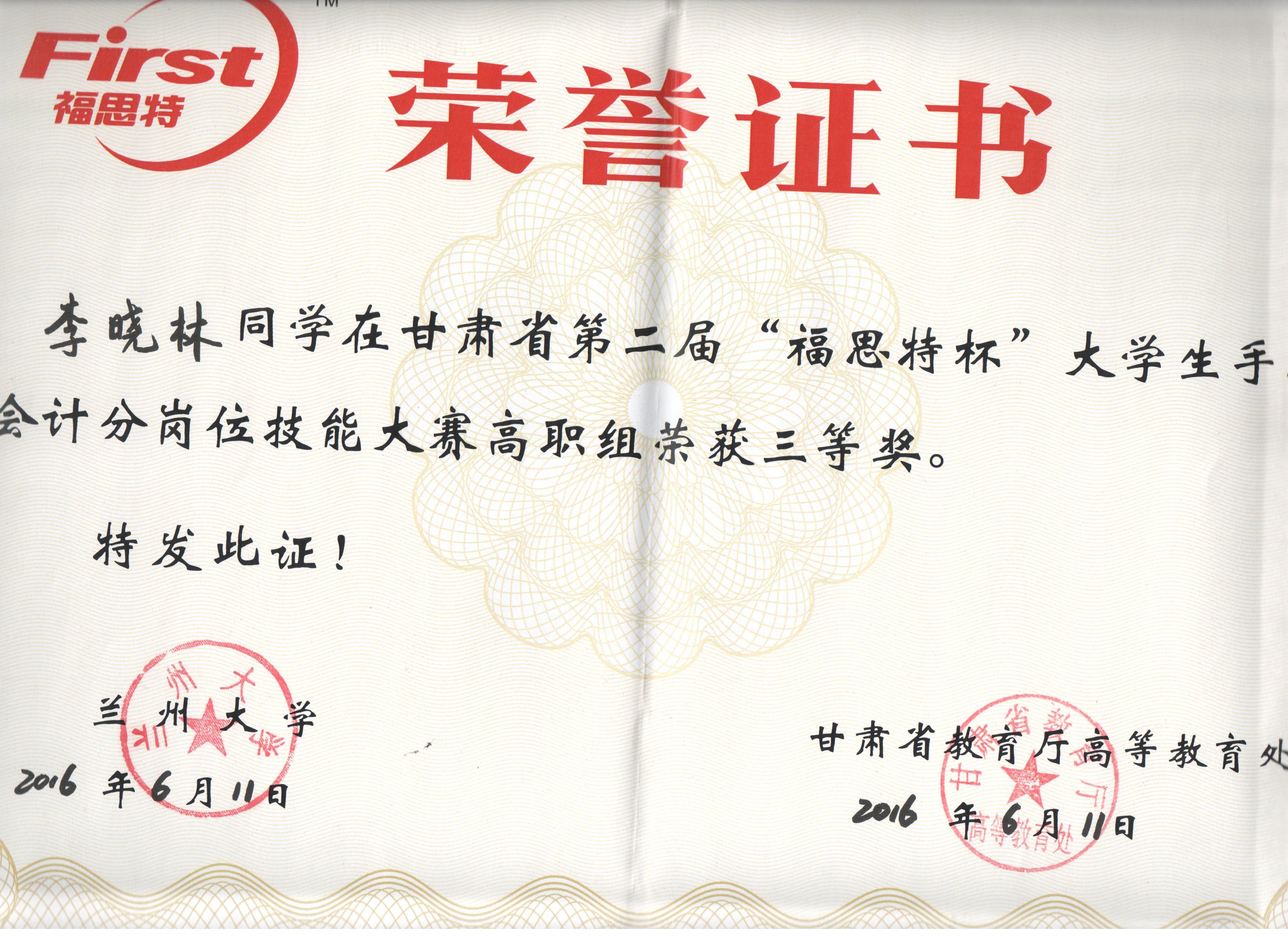 经济管理系李惠兰老师指导我系会计专业学生参加甘肃省第二届“福思特”大学生手工会计分岗位技能竞赛,荣获高职组三等奖。