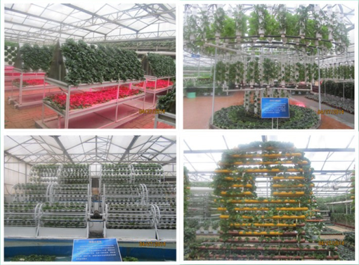 蔬菜高科技无土栽培模式展厅展示了各种无土栽培模式,主要有水培、雾培、基质培、管道培、立柱培、吊管培、螺旋式立体栽培等。管道设施密密匝匝、高低参差、错落有致,叶绿、花红、果黄,使展厅成为集各种工艺造型展示和高科技管道栽培模式于一体的荟萃园。
