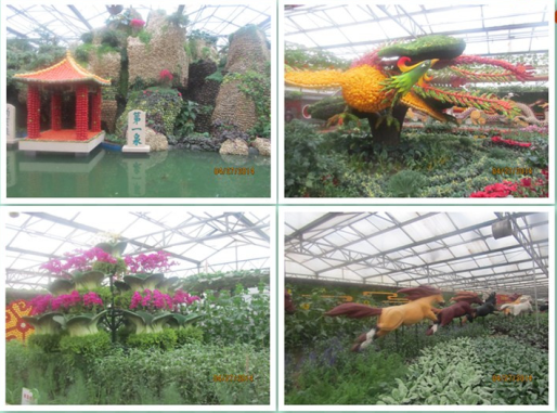 蔬菜园艺厅为优秀蔬菜景观的集中营,五颜六色的种子、蔬菜、花卉及其他普通材料,在园艺师的手中演绎成气势恢弘、雄伟壮观、形神兼备、意趣天成的艺术精品。其中主景点“美丽中国”将大明湖牌坊、蓬莱阁、五岳独尊、孔子雕像、象鼻山、黄果树瀑布、云冈石窟、嘉峪关、长白山瀑 布……30余个国内知名人文及自然景点穿插其中。整个景点从远处看去,把祖国的大好河山、现代科技和鲜活蔬菜有机融为一体,凸显着“绿色·科技·未来”的主题。