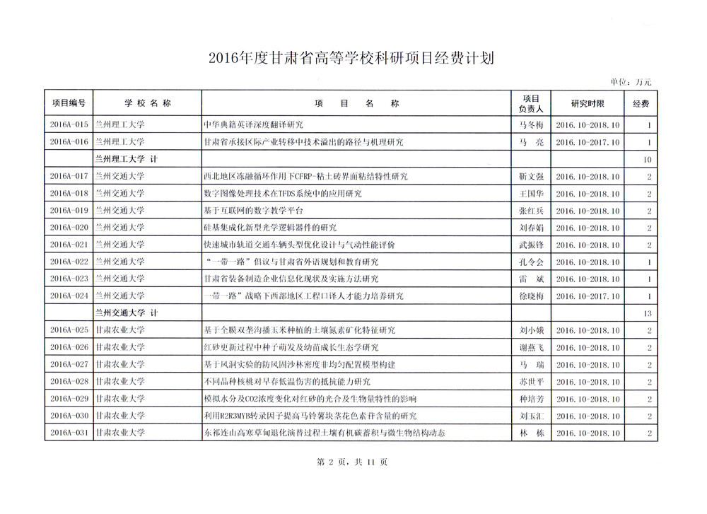 转发甘肃省财政厅 教育厅文件 关于下达2016年度甘肃省高等学校科研项目自…