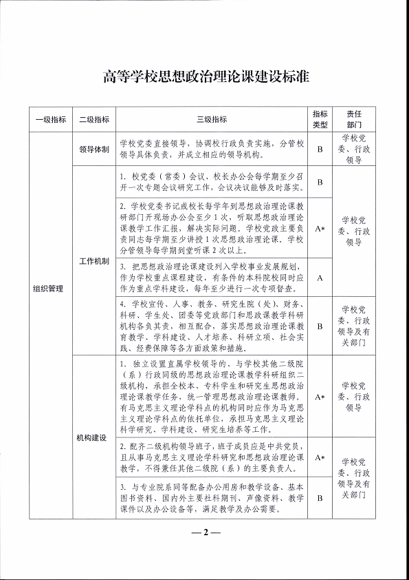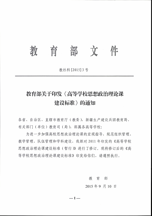 关于印发《高等学校思想政治理论课建设标准》的通知