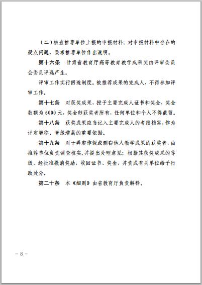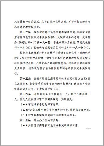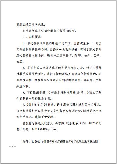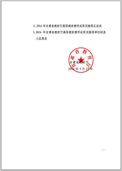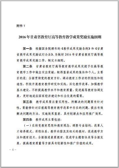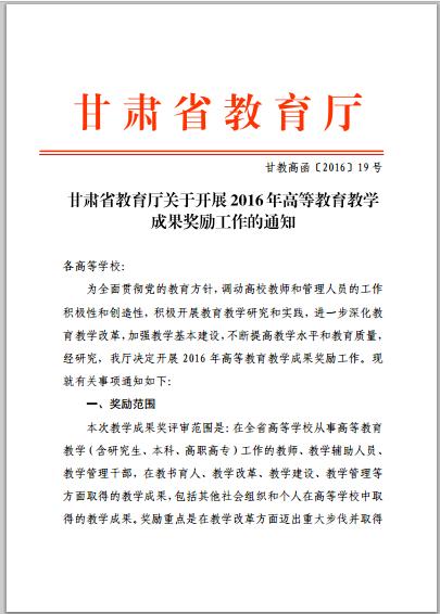 甘肃省教育厅关于开展2016年高等教育教学成果奖励工作的通知