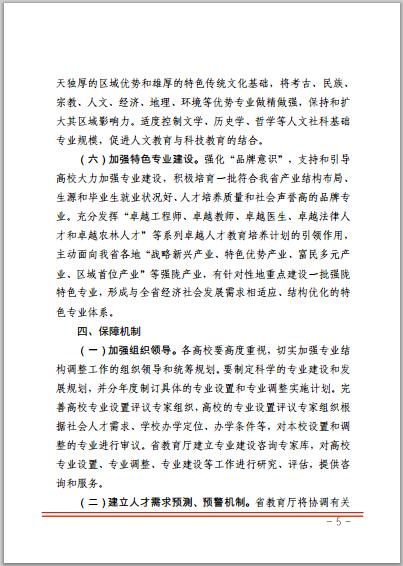 关于进一步加强全省高等学校专业结构调整工作的指导意见