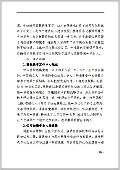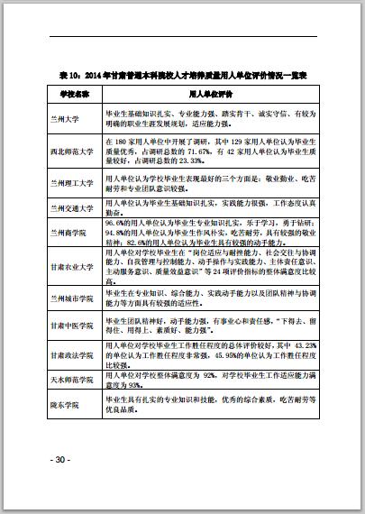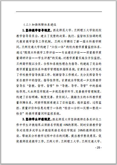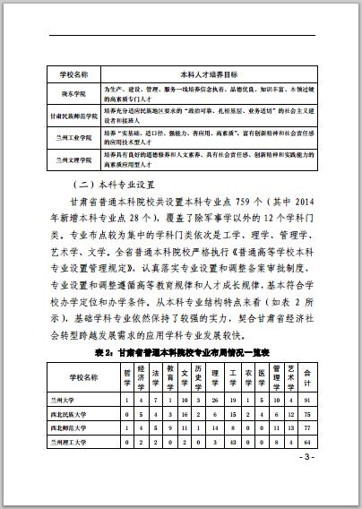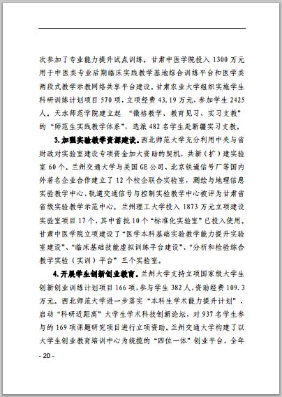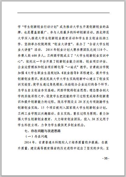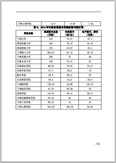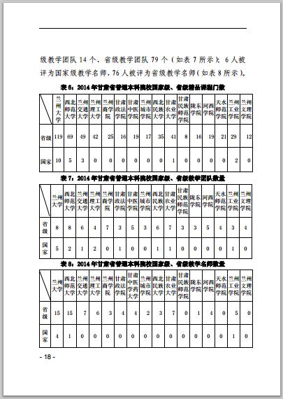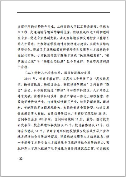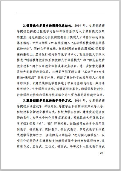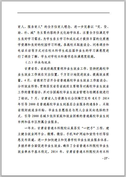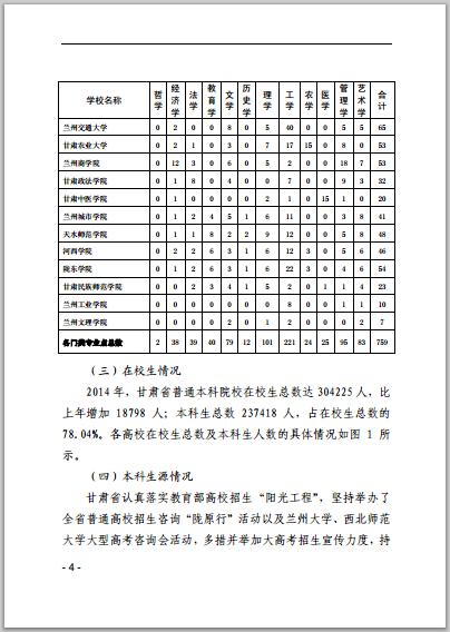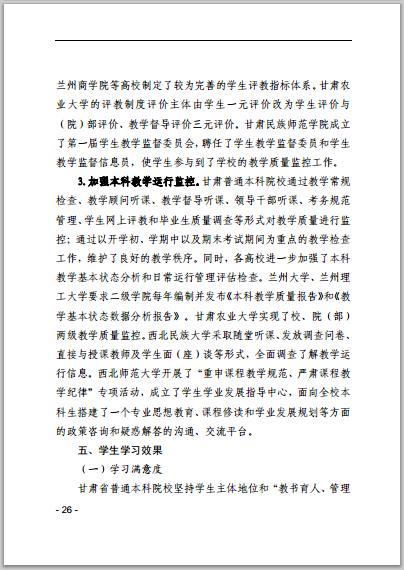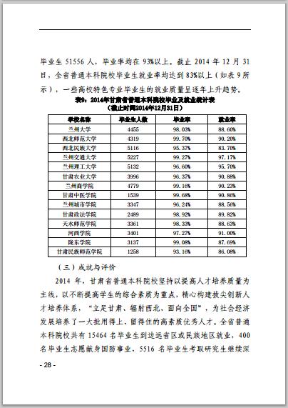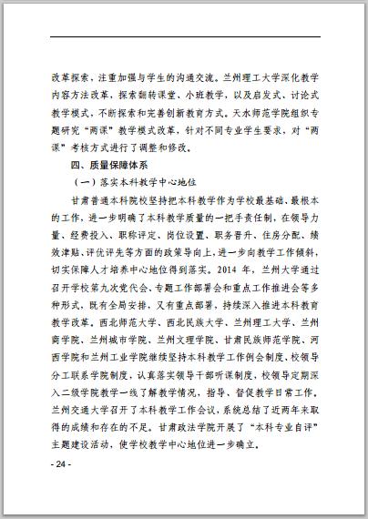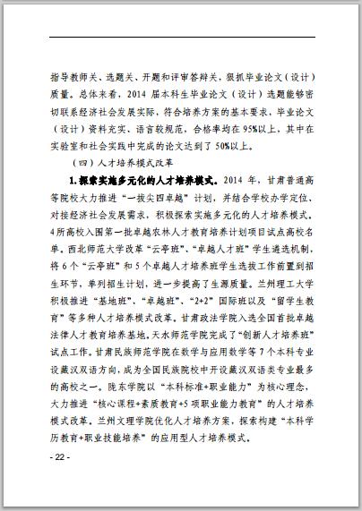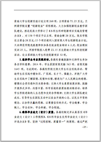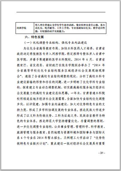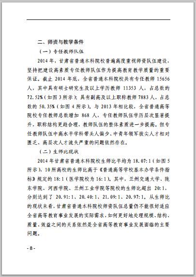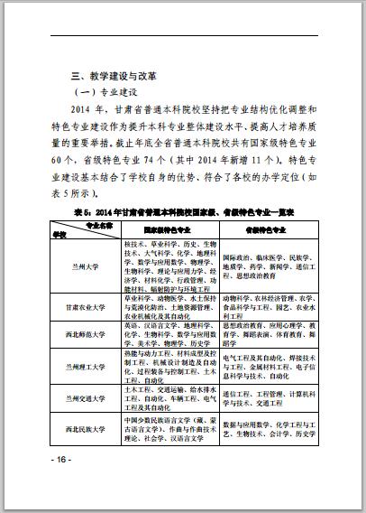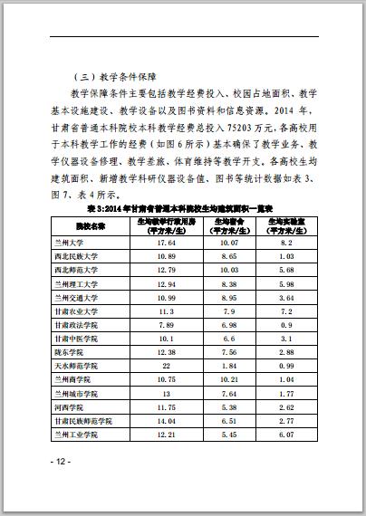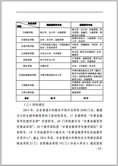 甘肃省普通高等学校2014年本科教学质量报告
