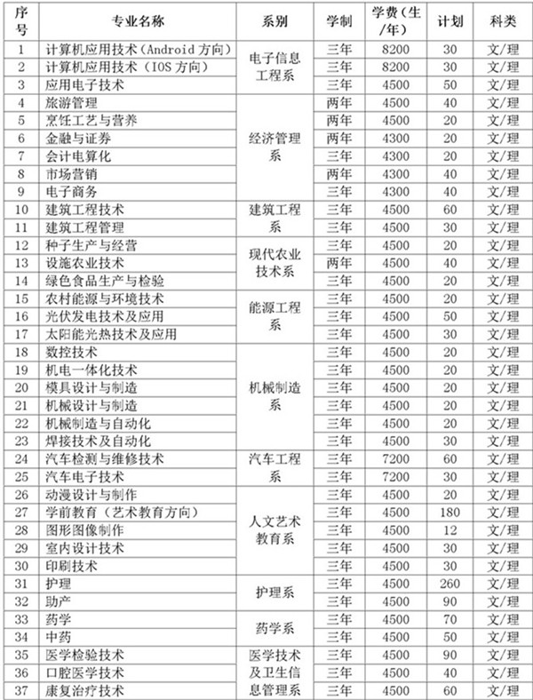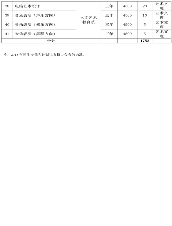 武威职业学院2015年招生计划表