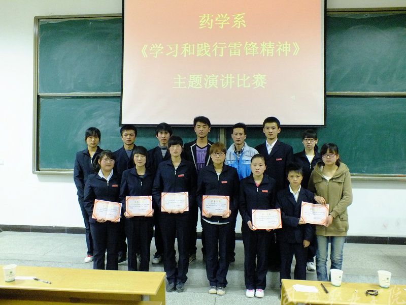 为了弘扬和践行雷锋精神,促进全体学生文明素养的提高,杜绝校园各种不文明现象发生,药学系于3月20日举行了以“学习和践行雷锋精神”为主题的演讲比赛。通过本次活动,形成蓬勃向上、催人奋进的校园文化,激发师生的使命感,责任感,积极营造了“学英模、树新风”的良好氛围。