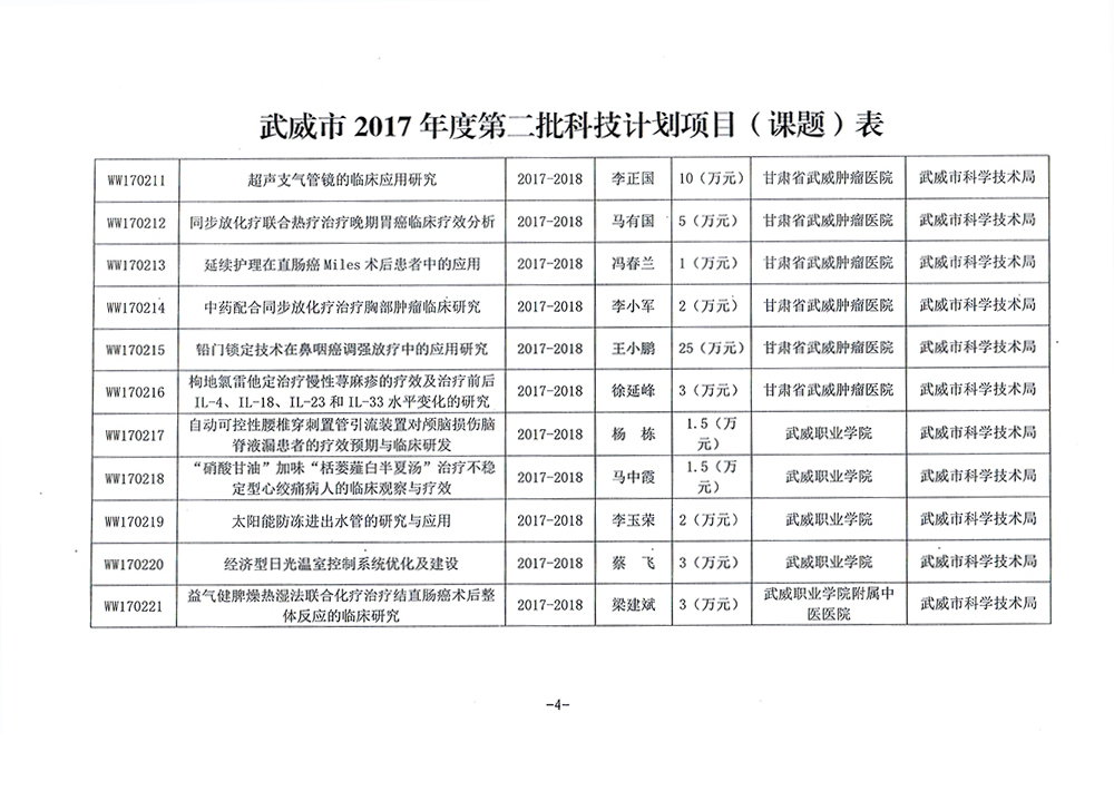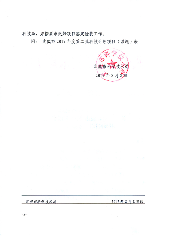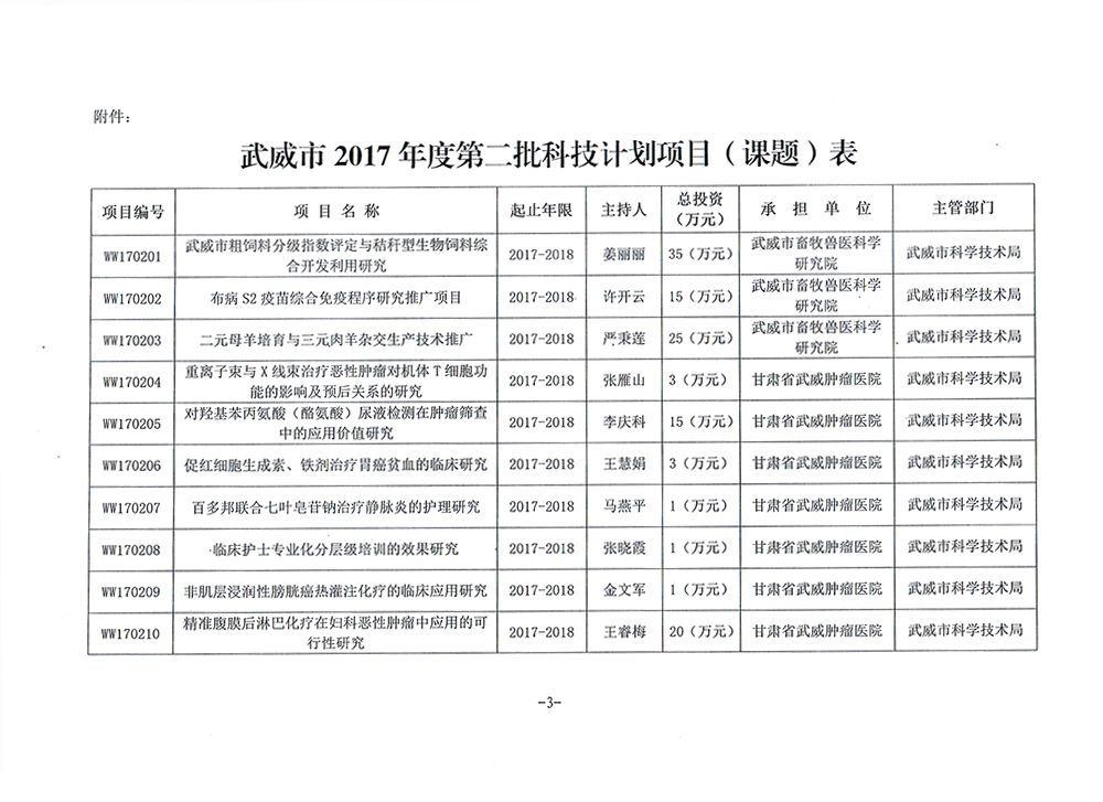转发武威市科学技术局关于下达武威市2017年度第二批市列科技计划项目的通知