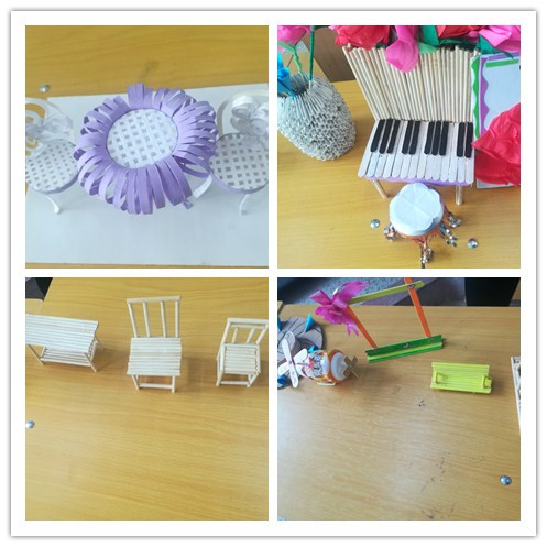 活动中,指导老师要求学生们充分利用身边废弃的饮料瓶、废纸、塑料、布料、木料等废旧材料,通过自己的创意,制作出体现科技、环保的工艺作品。活动布置后,同学们积极参与,充分利用网络搜集相关资料及设计图案,凭借丰富的想象力和创造力,将生活中的废品制作成了各种各样的手工艺术品。