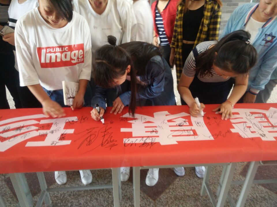 5月22日 ,系团学会制作横幅标语“关注健康、珍爱生命”,召集签名活动。