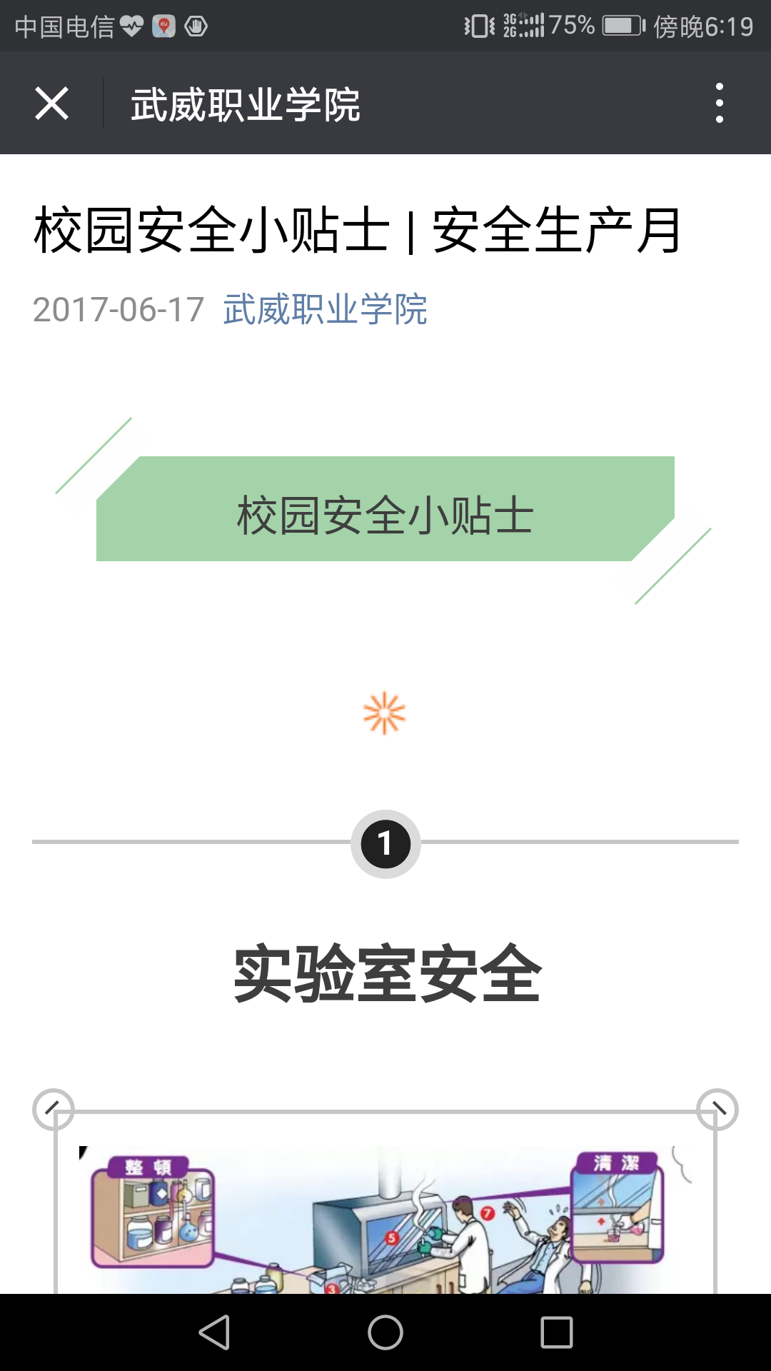根据《甘肃省教育厅关于印发<2017年“安全生产月”和“安全生产陇原行”活动实施方案>的通知》(甘教安函〔2017〕16号)精神,结合我院安全工作实际,在全院开展了安全生产月宣传教育活动。