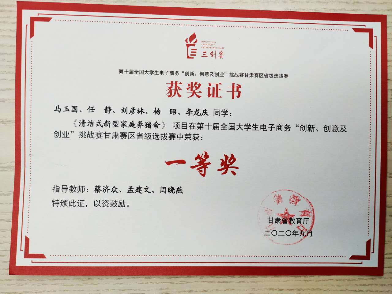 第十届全国大学生电子商务“创新、创意及创业挑战赛甘肃省赛区省级选拔赛《清洁式新型家庭养猪舍》