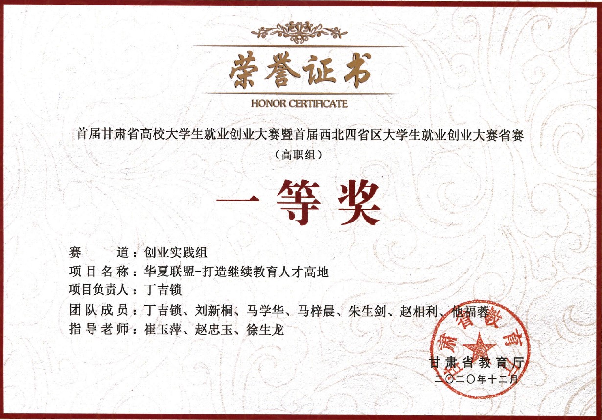 首届甘肃省高校大学生就业创业大赛暨首届西北四省区大学生就业创业大赛省赛(高职组)《华夏联盟-打造继续教育人才高低地》