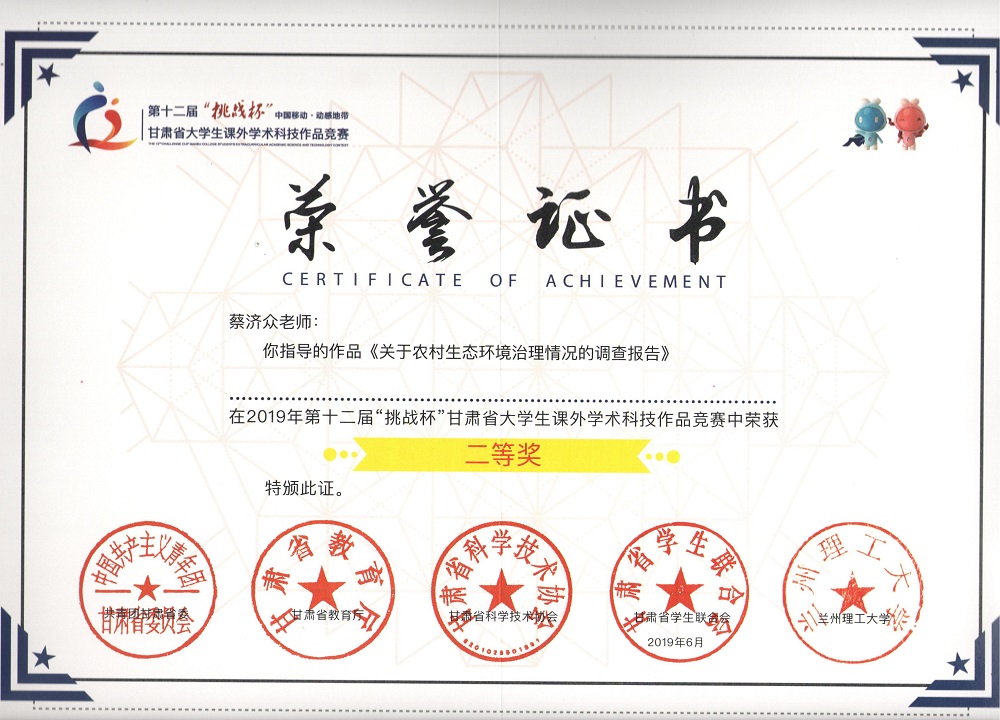 第十二届“挑战杯”甘肃省大学生课外学术科学作品《武威市基层常见病多发病现状调查与诊治对策研究》
