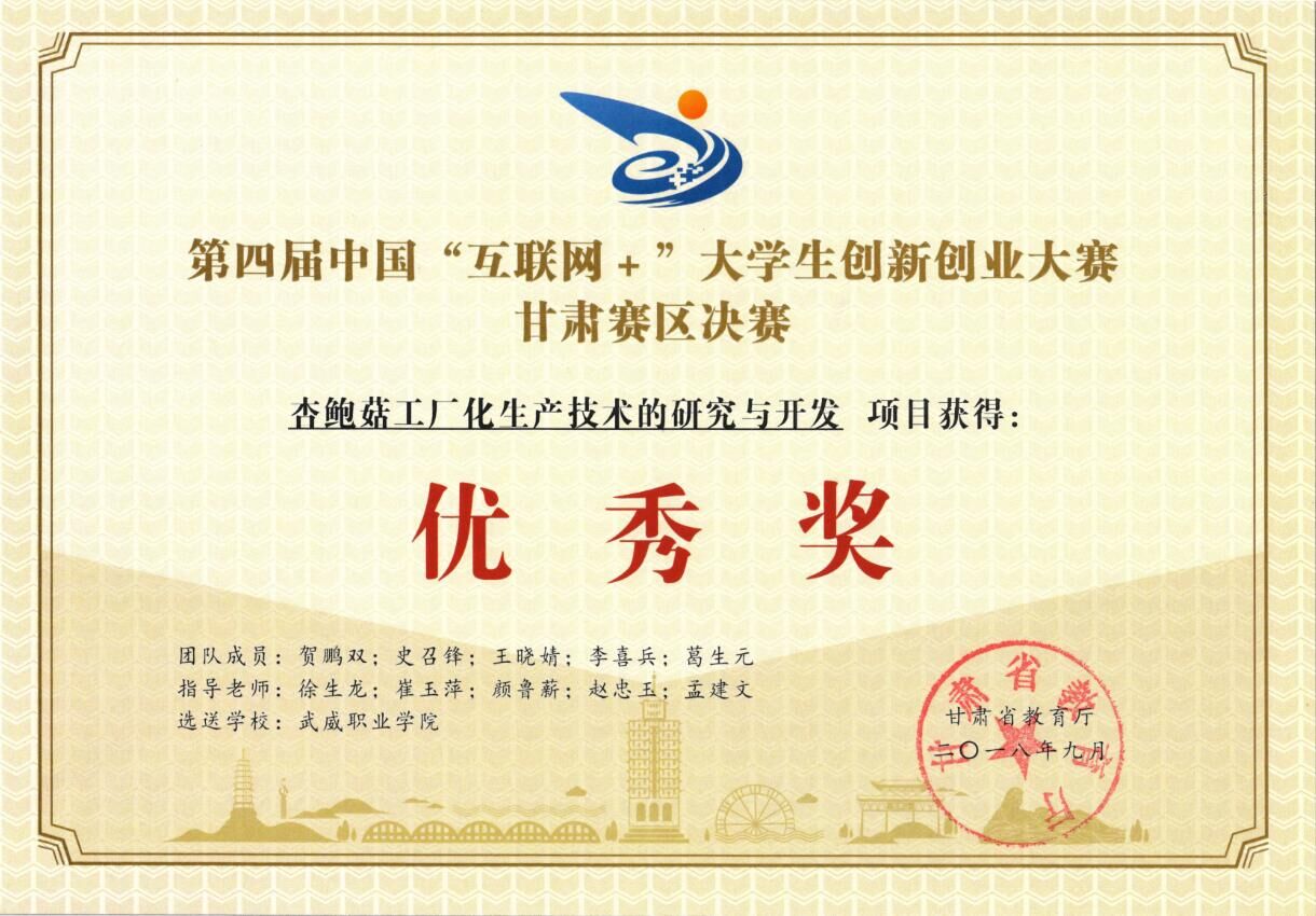 第四届中国“互联网+”大学生创新创业大赛甘肃赛区决赛《杏鲍菇工厂化生产技术的研究与开发》