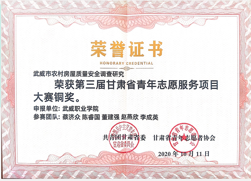 第三届甘肃省青年志愿服务项目《武威市农村房屋质量安全调查研究》